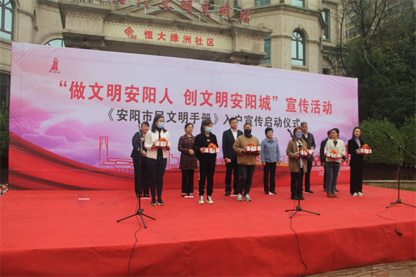 儀式上,公司志愿者李俊峰代表北關(guān)區(qū)志愿者進(jìn)行“爭做文明市民”宣誓,市衛(wèi)健委陳美紅代表文明單位表態(tài)發(fā)言,薛崇林、張玲、李志弘、車俊朝、路錄平、王洪忠為市、區(qū)各單位代表發(fā)放《安陽市民文明手冊》。