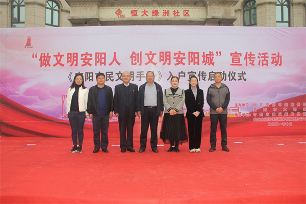 10月9日上午,由公司承辦的,安陽“做文明安陽人 創(chuàng)文明安陽城”宣傳活動暨《安陽市民文明手冊》入戶宣傳啟動儀式,在恒大綠洲新時代文明實踐站舉行。市委常委、宣傳部部長、副市長薛崇林,市人大常委會副主任張玲,市政協(xié)副主席李志弘,市委宣傳部副部長、市文明辦主任車俊朝,北關(guān)區(qū)委副書記、區(qū)長路錄平,北關(guān)區(qū)委常委、宣傳部長、副區(qū)長王洪忠,各級文明單位代表、社區(qū)代表、北關(guān)區(qū)志愿者代表,群眾代表參加儀式,儀式由車俊朝主持。公司黨委委員、副總經(jīng)理魏東帶領(lǐng)28名志愿者參加此次活動。