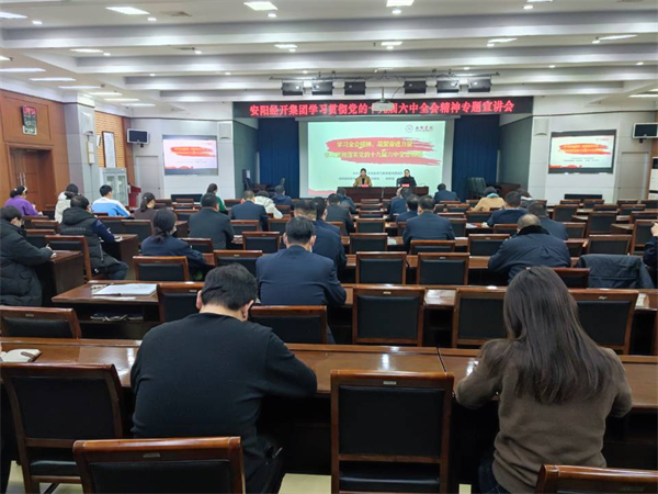 12月14日上午,安陽(yáng)經(jīng)開集團(tuán)召開學(xué)習(xí)貫徹黨的十九屆六中全會(huì)精神專題宣講會(huì),深入學(xué)習(xí)貫徹習(xí)近平總書記在黨的十九屆六中全會(huì)上的重要講話精神和《中共中央關(guān)于黨的百年奮斗重大成就和歷史經(jīng)驗(yàn)的決議》,特邀請(qǐng)中共安陽(yáng)市委黨史學(xué)習(xí)教育宣講團(tuán)成員、安陽(yáng)學(xué)院黨委委員、宣傳部部長(zhǎng)姚林茹進(jìn)行授課,會(huì)議由經(jīng)開集團(tuán)黨委委員、副總經(jīng)理劉志霞主持。洹河保安公司黨委副書記張錫軍帶隊(duì),組織公司15名黨員干部參加學(xué)習(xí)。