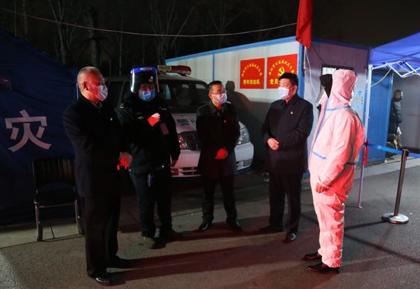 臘月的夜晚,最低氣溫已降到零度以下,堅(jiān)守防疫一線的抗疫隊(duì)員依然在忙碌。王高峰和防疫隊(duì)員親切交談,“飯吃的怎么樣?”“穿的暖不暖和?”“休息的怎么樣?”。他說(shuō),當(dāng)前疫情防控工作仍在關(guān)鍵時(shí)期,臨近春節(jié)返鄉(xiāng)人員不斷增多,一定做到嚴(yán)防死守,把“外防輸入”全面、具體、深入地落到實(shí)處?;疖囌臼欠酪叩闹匾翱?,是疫情防控工作的第一線,你們舍小家、為大家,克服一切困難,堅(jiān)守工作崗位,為全市疫情防控工作作出了積極貢獻(xiàn)。希望大家一如既往地發(fā)揚(yáng)不怕苦、不怕累的工作作風(fēng),加強(qiáng)自我防護(hù),注意勞逸結(jié)合,以最充沛的精力,堅(jiān)決守好疫情防控第一道防線。