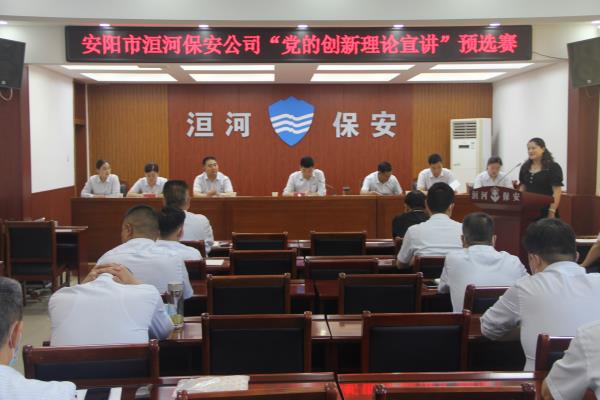 為深入學(xué)習(xí)貫徹習(xí)近平新時(shí)代中國(guó)特色社會(huì)主義思想和黨的十九大及歷次全會(huì)精神,推動(dòng)黨的創(chuàng)新理論入腦入心,團(tuán)結(jié)引領(lǐng)廣大職工堅(jiān)定跟黨走、建功新時(shí)代,激勵(lì)全體洹河保安人以更加昂揚(yáng)的精神狀態(tài)迎接黨的二十大勝利召開(kāi),2022年5月19日下午,公司黨委舉辦“黨的創(chuàng)新理論宣講”預(yù)選賽,黨委書(shū)記、董事長(zhǎng)、總經(jīng)理王高峰,黨委委員、副總經(jīng)理魏東到會(huì)觀摩,比賽由黨委副書(shū)記張錫軍主持。