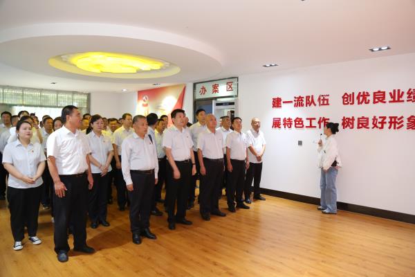 最后,干部職工重溫了入黨誓詞,鏗鏘有力的宣誓聲響徹整個(gè)廉政警示教育基地。