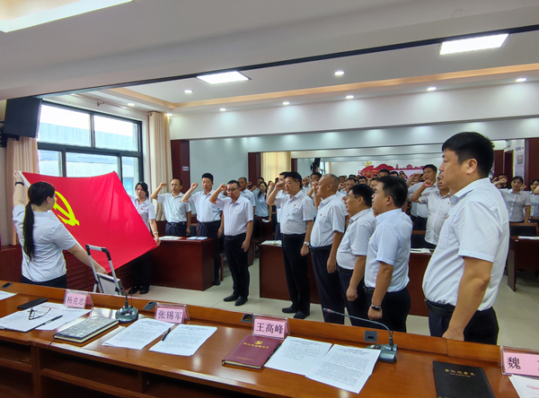 在王高峰同志帶領(lǐng)下,面對(duì)鮮紅的中國共產(chǎn)黨黨旗,16名新黨員舉起右拳、莊嚴(yán)宣誓,許下錚錚誓言。全體老黨員一同重溫入黨誓詞,時(shí)刻不忘自己的政治身份,無愧于共產(chǎn)黨員的光榮稱號(hào)。