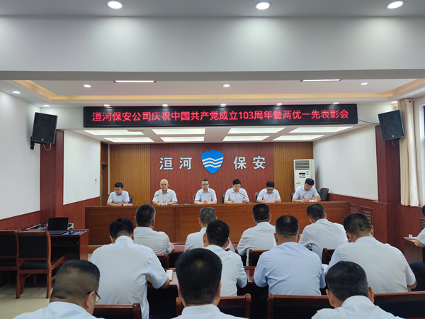 7月5日,公司黨委隆重召開慶祝中國共產(chǎn)黨成立103周年暨“兩優(yōu)一先”表彰大會(huì),回顧黨的光榮歷史,重溫入黨誓言,表彰在保安戰(zhàn)線上作出貢獻(xiàn)的優(yōu)秀共產(chǎn)黨員、優(yōu)秀黨務(wù)工作者和先進(jìn)黨組織。黨委書記、董事長王高峰同志出席并發(fā)表講話,黨委副書記、監(jiān)事長張錫軍,黨委委員、總經(jīng)理魏東,黨委委員楊克忠,黨委委員、副總經(jīng)理孫國濤、李樞林,黨支部書記、部門負(fù)責(zé)人、受到表彰的先進(jìn)集體和個(gè)人、以及2024年度預(yù)備黨員參加了會(huì)議,會(huì)議由張錫軍主持。