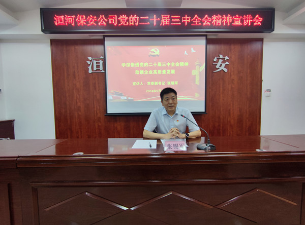 宣講會上,張錫軍從深刻認(rèn)識黨的二十屆三中全會的重大意義、準(zhǔn)確把握黨的二十屆三中全會的主要內(nèi)容和精神實質(zhì) 、強(qiáng)化保安工作與全會精神的深度融合、深入貫徹全會精神開創(chuàng)工作新局面、以全會精神為引領(lǐng)推動企業(yè)高質(zhì)量發(fā)展等方面,結(jié)合保安企業(yè)改革發(fā)展,為黨員干部帶來了一場精彩生動、內(nèi)容豐富的專題宣講。