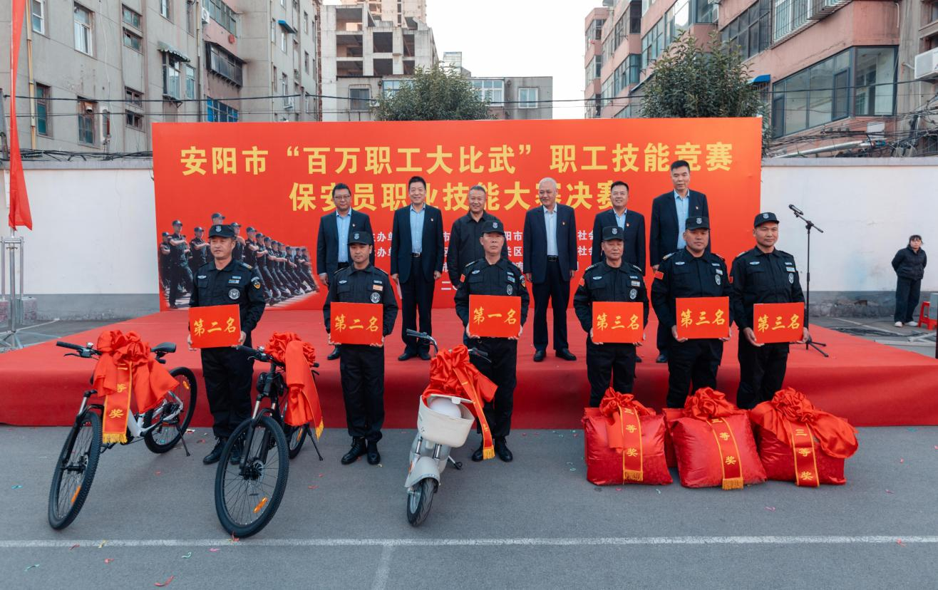 為全面展現(xiàn)全市保安隊(duì)伍的專業(yè)素養(yǎng)和精神風(fēng)貌,11月19日上午,安陽(yáng)市“百萬(wàn)職工大比武”保安員職業(yè)技能大賽決賽在公司后院成功舉辦。公司黨委書(shū)記、董事長(zhǎng)左長(zhǎng)虹出席大賽開(kāi)幕式并致辭,北關(guān)區(qū)總工會(huì)常務(wù)副主席薛梅等相關(guān)單位領(lǐng)導(dǎo)蒞臨指導(dǎo),公司黨委班子成員參加活動(dòng)。開(kāi)幕式由公司黨委副書(shū)記、監(jiān)事長(zhǎng)、工會(huì)主席張錫軍主持。