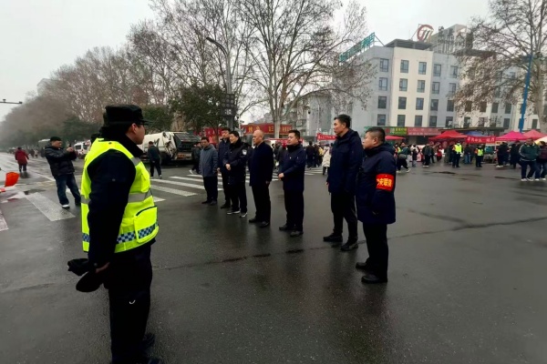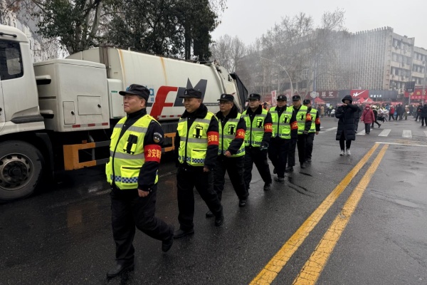 廟會當日清晨4時,全體執(zhí)勤人員頂風冒雨、不畏嚴寒,準時到崗到位。公司領導班子深入重點區(qū)域督導檢查;執(zhí)勤隊員積極配合交管部門開展交通管控、疏導人流車流、保障應急通道暢通,加密重點區(qū)域巡邏頻次,及時勸阻違規(guī)行為,全力維護現場秩序。