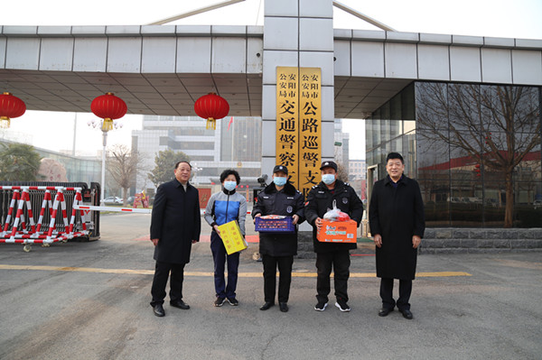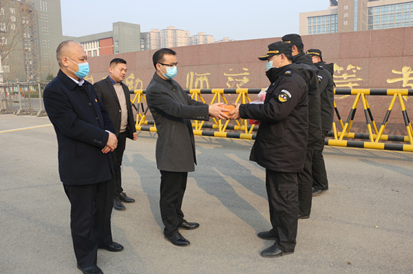 隨后,公司領(lǐng)導(dǎo)分成三組先后到人防安陽幼師、龍安區(qū)政府崗點(diǎn),守押六大隊(duì)、守押十大隊(duì)駐地,特保大隊(duì)開發(fā)區(qū)巡防駐地、中國文字博物館崗點(diǎn),鼎誠物業(yè)海興御花園、交警支隊(duì)項(xiàng)目部,藍(lán)盾駕校、鼎信公司,對堅(jiān)守在工作崗位的員工進(jìn)行了慰問。