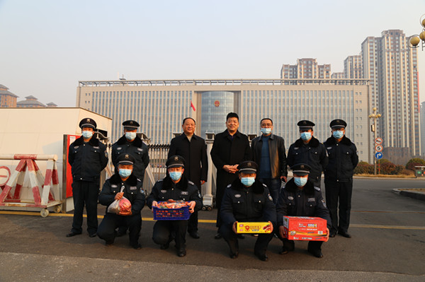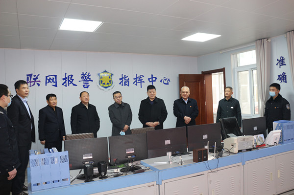 公司領(lǐng)導(dǎo)首先集體來到公司聯(lián)網(wǎng)報(bào)警指揮中心,給技防值守隊(duì)員拜年,同時(shí)通過守庫遠(yuǎn)程監(jiān)控系統(tǒng)向守押九大隊(duì)、六大隊(duì)守庫隊(duì)員拜年問好。