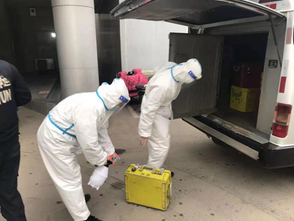 演練中,大隊(duì)模擬接到中國(guó)銀行通知,需要到人民醫(yī)院接收錢款勤務(wù)。大隊(duì)出勤人員首先進(jìn)行消毒穿戴防護(hù)服,完成消毒程序后車輛出車,到達(dá)人民醫(yī)院和銀行工作人員嚴(yán)格按照消毒程序?qū)钕溥M(jìn)行交接,隨后將款箱押至規(guī)定地點(diǎn),車輛回隊(duì)后再按照程序進(jìn)行消毒交接。