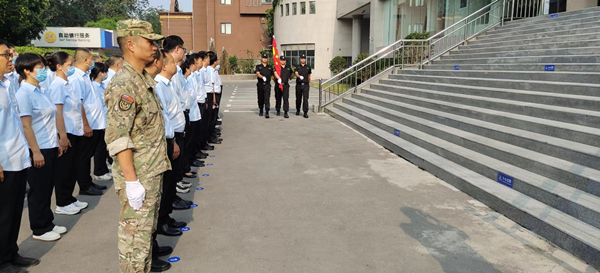 8時(shí)30分,升旗儀式正式開始。升旗手就位,隨著雄壯的國歌響起,全體員工向國旗行注目禮,五星紅旗在國歌聲中冉冉升起、迎風(fēng)飄揚(yáng)。為做好這次升旗儀式,守押五大隊(duì)大隊(duì)長牛曉波認(rèn)真挑選升旗手,對(duì)選定人員進(jìn)行了針對(duì)性訓(xùn)練。本次升旗儀式,不僅體現(xiàn)了守押五大隊(duì)與貴行的團(tuán)結(jié)協(xié)作能力,更是展現(xiàn)了守押五大隊(duì)昂揚(yáng)向上的精神風(fēng)貌。自本月起,每月一號(hào)為升旗日。