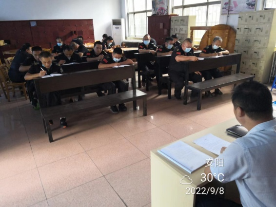 按照公司會議文件精神,根據(jù)“百日行動”專項(xiàng)督導(dǎo)檢查工作方案,結(jié)合大隊(duì)實(shí)際情況,守押七大隊(duì)組織各中隊(duì)在中秋節(jié)前召開安全會議。