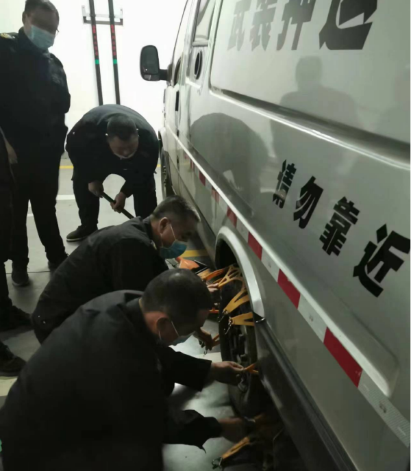 受寒潮影響,近日安陽市域?qū)⒂瓉碛暄┙禍靥鞖狻楸WC出勤安全,守押十二大隊于1月13日上午對押運車輛油路、電路、滅火器、輪胎防滑鏈等進行全面安全檢查,組織開展車輛輪胎防滑鏈的拆裝演練,以應(yīng)對未來因幾日天氣變化而造成出勤途中的突發(fā)狀況。