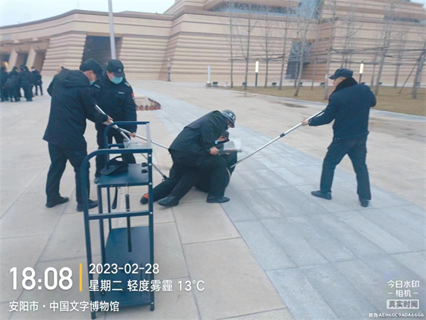 本次演練,特保隊員熟練掌握了反恐器械使用方法和應(yīng)對恐怖襲擊應(yīng)采取的防范措施,增進了團隊協(xié)作,提高了應(yīng)對突發(fā)事件的處理能力,為保障游客生命財產(chǎn)安全和場館設(shè)施及文物安全打下了堅實基礎(chǔ)。