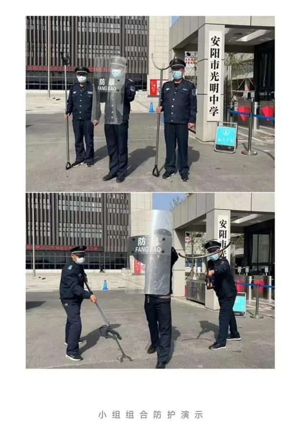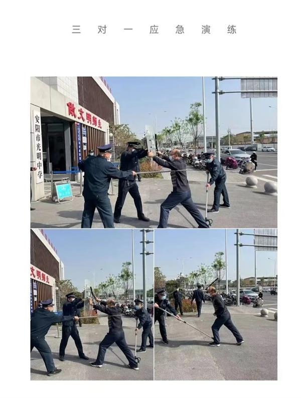 為切實(shí)提高校園安保防范能力,4月9日上午,人防三大隊(duì)派駐安陽(yáng)市光明中學(xué)保安班開(kāi)展安保防護(hù)技能培訓(xùn)暨實(shí)戰(zhàn)演練活動(dòng)。