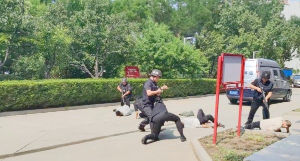 演練內(nèi)容以5名不法分子企圖在銀行網(wǎng)點(diǎn)門(mén)口乘押款員裝卸款箱時(shí)進(jìn)行搶奪款箱為背景,開(kāi)展防盜搶預(yù)案演練。面對(duì)歹徒,車組人員各司其職,快速反應(yīng),駕駛員立即向駐地隊(duì)長(zhǎng)報(bào)告,大隊(duì)長(zhǎng)迅速下達(dá)啟動(dòng)應(yīng)急預(yù)案的指令,并向銀行保衛(wèi)部門(mén)報(bào)告;同時(shí)守押隊(duì)員毫不畏懼,迅速行動(dòng)控制歹徒,確保人員及款箱安全。