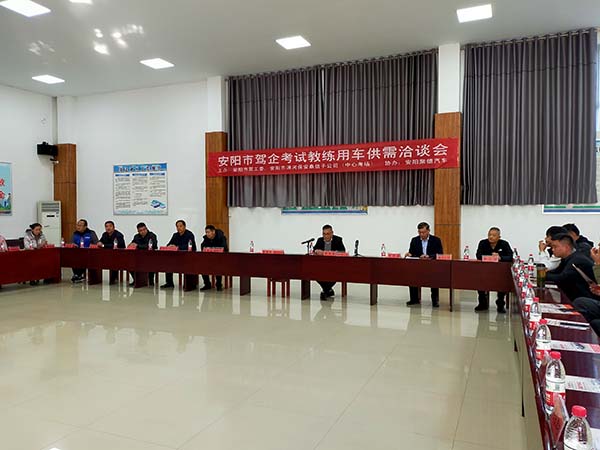 11月18日上午,安陽市道路運輸協(xié)會機動車駕駛員培訓(xùn)工作委員會(以下簡稱道協(xié))秘書長陳曉東、駕工委秘書長柳偉太,鼎信公司班子及來自全市近40家駕校負責(zé)人在中心考場十二分培訓(xùn)教室相邀一聚,與奇瑞汽車代理商就安陽市駕企考試教練用車供需進行洽談并簽訂合作意向書。會議由洹河保安公司黨委委員楊克忠主持。