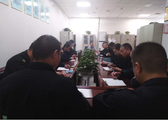 10月15日下午6點30分,守押十二大隊召開全員會議,大隊長李艷軍針對守押分公司關于開展“嚴格管理隊伍、搞好優(yōu)質服務”活動回頭看的通知,就具體工作進行部署。