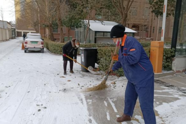 受西南暖濕氣流和較強冷空氣共同影響,1月31日夜里,我市出現(xiàn)5毫米以上雨雪。大雪隨風而來,滿地銀裝素裹,紛紛揚揚的雪花將每一個角落點綴,如約而至的不止有美麗雪景,還有鼎誠物業(yè)人堅守風雪的滿腔熱情。