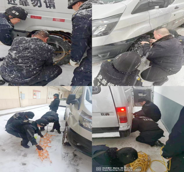 各車組立即按照大隊要求,迅速行動,安裝好防滑鏈,繼續(xù)執(zhí)行押運任務,確保冰雪天氣大隊勤務安全運行。