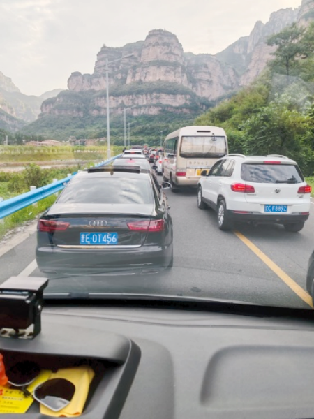由于暑期前往林州旅游的游客非常多,守押七大隊聯(lián)社中隊任村線路的石板巖網(wǎng)點恰好位于景區(qū)附近,所以常常遭遇嚴重的車輛擁堵,影響押運工作。但該車組人員不畏艱難,以高度的使命感和安全意識,克服重重困難,安全的完成了押運任務。