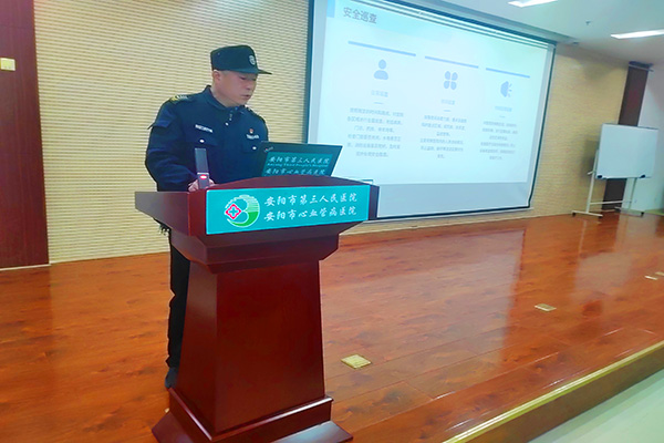 3月11日上午,人防二大隊(duì)教官楊承濤應(yīng)第三人民醫(yī)院之邀,在醫(yī)院行政報告廳為該院30余名安保人員開展崗位技能專項(xiàng)培訓(xùn)。副院長徐江海、保衛(wèi)科科長王惠偉和人防二大隊(duì)副大隊(duì)長張海林、尚斌參加。