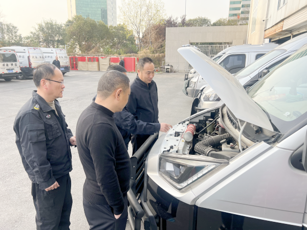 此次排查重點(diǎn)針對(duì)車輛的動(dòng)力系統(tǒng)、電路系統(tǒng)。大隊(duì)長馮文峰打開引擎蓋,觀察水箱、油箱有無滴漏,聽發(fā)動(dòng)機(jī)運(yùn)轉(zhuǎn)聲音判斷是否存在異常;檢查電路系統(tǒng),查看車燈是否工作正常,各線路有無老化、破損,確保電路無漏點(diǎn)現(xiàn)象。