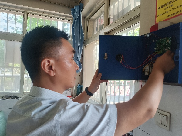技防分公司副經理劉帥帶領專業(yè)技術人員, 通過外觀檢查、報警響應測試、語音對講功能、線路與供電檢查等,對考點學校一鍵報警系統(tǒng)進行全流程、專業(yè)化檢測。同時對安保人員進行專項培訓,強化設備操作規(guī)范與應急處置能力,確保關鍵時刻“一鍵即應、高效處置”。