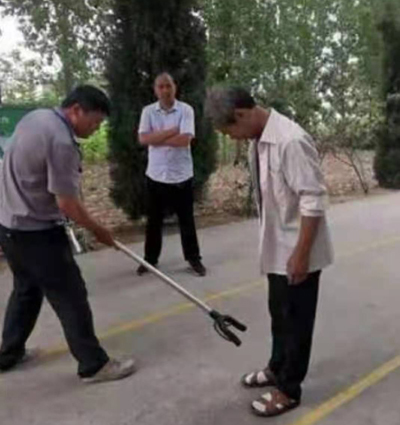 學(xué)校教職員工培訓(xùn)后,暢談了培訓(xùn)心得,經(jīng)過培訓(xùn),大家熟悉了各種反恐器械的使用方法,增強(qiáng)了師生安全防范意識和面對突發(fā)暴恐事件時的應(yīng)對能力;我們在日常工作中也要時刻注意異常跡象,一旦有突發(fā)情況,要積極配合學(xué)校安保人員制服恐怖分子,確保校園平安,學(xué)生安全。圖為石利飛在講解防暴器械的使用。