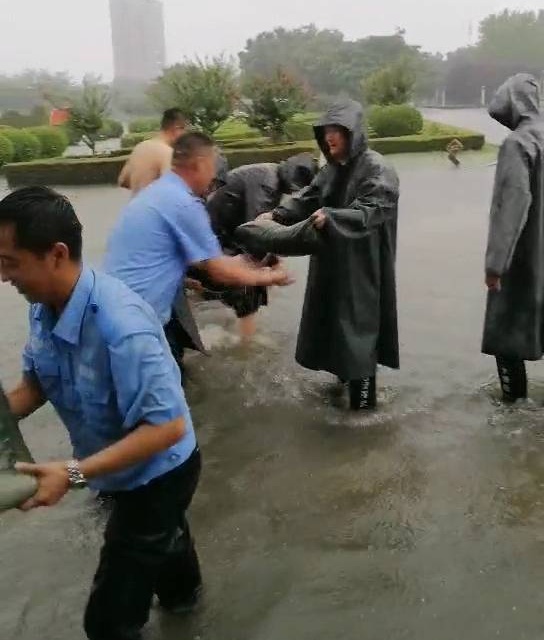 7月22日早6時許,汛情肆虐,雨越下越大,寬闊的安陽市東區(qū)文峰大道水深過膝,儼然變成了一條奔涌的河流。安陽市事務(wù)管理局在周福林副局長的指揮下,緊急啟動防汛救災(zāi)應(yīng)急處置預(yù)案,各防汛突擊小組分工明確,責(zé)任到人,全力投入抗洪戰(zhàn)斗。在南大門值守的駐市黨政大樓保安員在中隊(duì)長戶永豐帶領(lǐng)下搬運(yùn)沙袋剛構(gòu)筑好攔水壩,還沒來得及歇口氣,忽然聽到一女子“救命”的呼救聲。隊(duì)員們循聲望去,只見路上洶涌的激流中沖過來一個人,那人想站又站不起來,在水中翻滾著由西向東順流而下。
