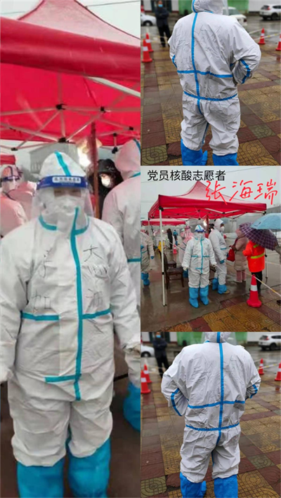 1月10日早上,雨雪紛飛,為了能夠保證第一輪全民核酸檢測順利進(jìn)行,凌晨五點(diǎn)鐘張海瑞和報(bào)名的志愿者們?cè)缭绲貋淼綑z測現(xiàn)場。為了高質(zhì)量、零風(fēng)險(xiǎn)的完成任務(wù),他們進(jìn)行了采集前的個(gè)人防護(hù)等一系列專業(yè)培訓(xùn),積極配合醫(yī)務(wù)人員進(jìn)行現(xiàn)場的各項(xiàng)工作,全民核酸時(shí)他們聽從醫(yī)護(hù)人員的協(xié)調(diào)安排,積極投入到工作中,細(xì)心的為群眾核對(duì)信息;為了加快采集速度縮短受檢人員的等候時(shí)間,他們顧不上休息,吃飯,經(jīng)過七八個(gè)小時(shí)緊張工作,最終科學(xué)、規(guī)范、高效的完成全村每一位人員的采集任務(wù)。