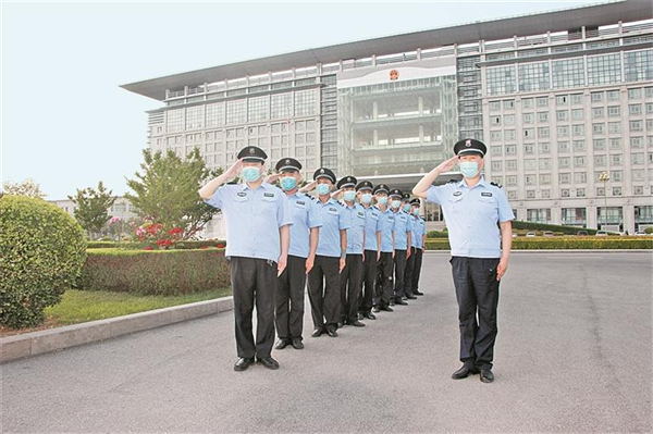 5月16日,戶永豐在市黨政綜合樓門崗值勤。