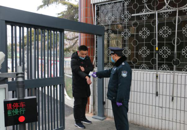圖為對進(jìn)入人員測量體溫,進(jìn)行信息登記。