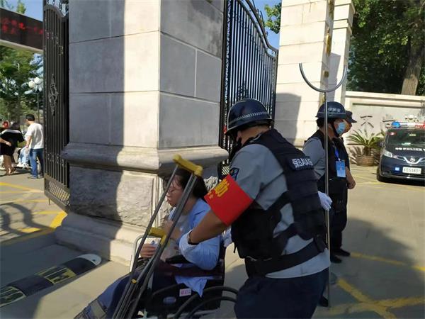 期間,一名開高的考生,因腿受傷不能行走,家長(zhǎng)用車子送至一中大門口。保安班長(zhǎng)王鳳銀見(jiàn)狀后,主動(dòng)跟家長(zhǎng)和學(xué)校溝通后,帶領(lǐng)隊(duì)員接過(guò)了護(hù)送該考生進(jìn)入考場(chǎng)的任務(wù)。他們用一中的輪椅,把考生送至考場(chǎng)外,聯(lián)系老師送至考場(chǎng)內(nèi),考試結(jié)束后,再把考生接出送至大門口。