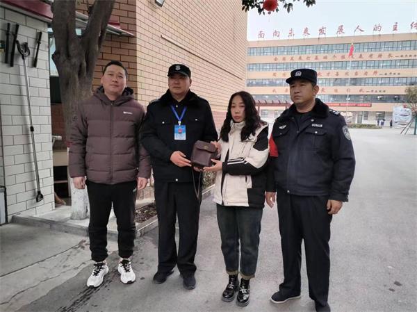 事情的原委是這樣的,3月4日下午放學(xué)時(shí),保安員李伏林在文博源校區(qū)門口執(zhí)勤時(shí),看到地上有一個(gè)棕色挎包,經(jīng)撿起查看,發(fā)現(xiàn)內(nèi)有身份證和很多信封,信封內(nèi)都是現(xiàn)金。于是他回到門崗將包妥善保管起來(lái),并向后勤保障部肖飛老師匯報(bào)了情況,二人隨設(shè)法聯(lián)系失主,后通過(guò)警察將失物交到了失主手中。次日早,當(dāng)李女士看到自己遺失的物品感激萬(wàn)分:“因?yàn)槟氖敖鸩幻粒业纳矸葑C和許多重要物品失而復(fù)得,非常感謝!”