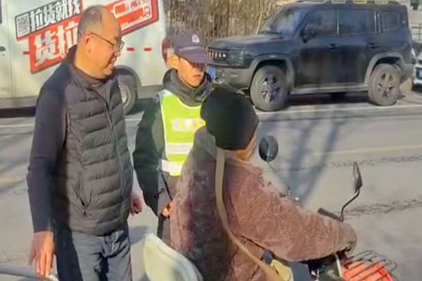 危急關頭,中隊長孫國彬與隊員李佳琦第一時間快步上前,一邊輕聲安慰老人別慌張,一邊小心翼翼地將老人扶起。隨后,兩人合力將側翻的三輪車抽起。待老人情緒平復后,孫國彬耐心詢問其身體感受及受傷情況,確認老人身體無恙,且能自行騎行離開后,又叮囑老人騎行途中務必注意安全、減速慢行。