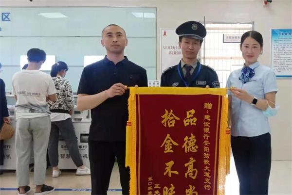“太感謝你們了,信息年代真是寧愿丟點錢也不能把手機丟了!手機儲存的信息太多了,一旦丟了,后果怕不堪設(shè)想。如果不是你們撿到,我也不會這么快找到手機?!?5月21日上午11點,王先生向人防四大隊派駐中國建行弦歌大道支行保安韓永剛送來了一面寫著“拾金不昧 品德高尚”的錦旗,表揚他拾金不昧的高尚品德。