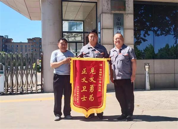 6月4日上午,一男子帶著一面“見義勇為、正義衛(wèi)士”的錦旗來到安陽豫煙物流公司,感謝鼎泰公司外派員工邢衛(wèi)波同志。這是怎么回事呢?