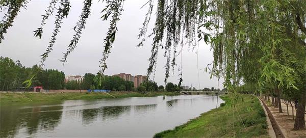 涌流遠上水連天,源頭名勝林慮山。 橫入善出三千載,孕育文化驚世間。 鶯聲燕語岸柳舞,微風輕拂波瀲滟。 釣友垂桿忘時辰,亭閣臺榭炫梨園。