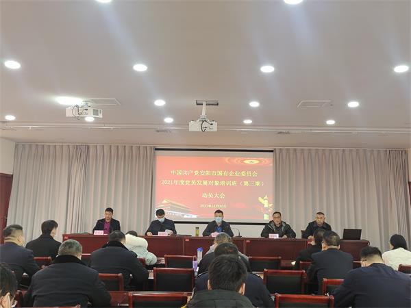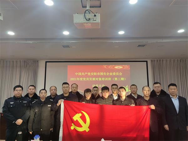 為嚴格黨員發(fā)展的政治標準,全面加強發(fā)展對象的教育培養(yǎng),進一步提升企業(yè)黨建質(zhì)量,落實《中國共產(chǎn)黨發(fā)展黨員工作細則》有關(guān)要求,11月30日至12月2日,中共安陽市國有企業(yè)委員會舉辦2021年度黨員發(fā)展對象培訓班(第三期),公司組織15名黨員發(fā)展對象參加了培訓。11月26日上午,公司黨委副書記張錫軍主持召開了黨員發(fā)展對象集中談話會,會議要求此次參加培訓人員端正入黨動機、嚴格遵守紀律、注重自身安全、樹立良好形象,充分發(fā)揮黨員先鋒模范作用,立足崗位多做貢獻。