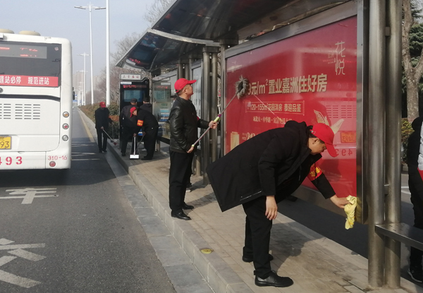3月5日上午,第五黨支部志愿者帶著掃帚和抹布等工具,來(lái)到人民大道三官?gòu)R公交車(chē)站臺(tái)清除垃圾,清理衛(wèi)生死角?;顒?dòng)中,大家協(xié)作配合,發(fā)揚(yáng)不怕苦、不怕臟的精神,對(duì)公交站臺(tái)、人行道及路邊綠化帶內(nèi)的落葉、雜草、垃圾等進(jìn)行了全面清理打掃。經(jīng)過(guò)大家的辛勤勞動(dòng),公交站點(diǎn)兩旁的衛(wèi)生干凈整潔、煥然一新。